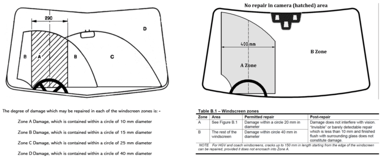 Zone B (Rest of Windscreen) | Up to 40mm, or cracks up to 150mm | ✅ |